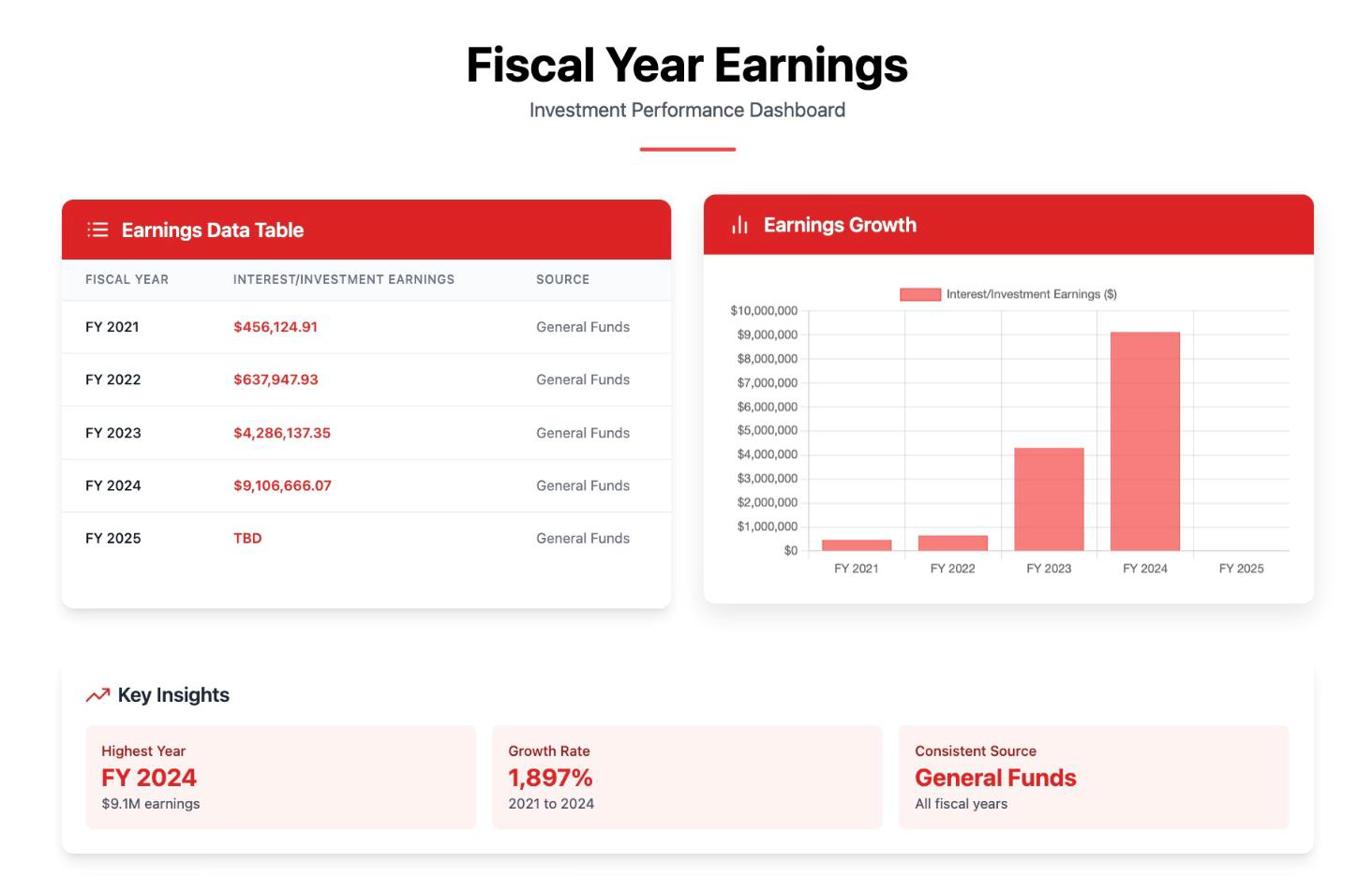 Interest & Investment Earnings (Year-to-year Comparison)